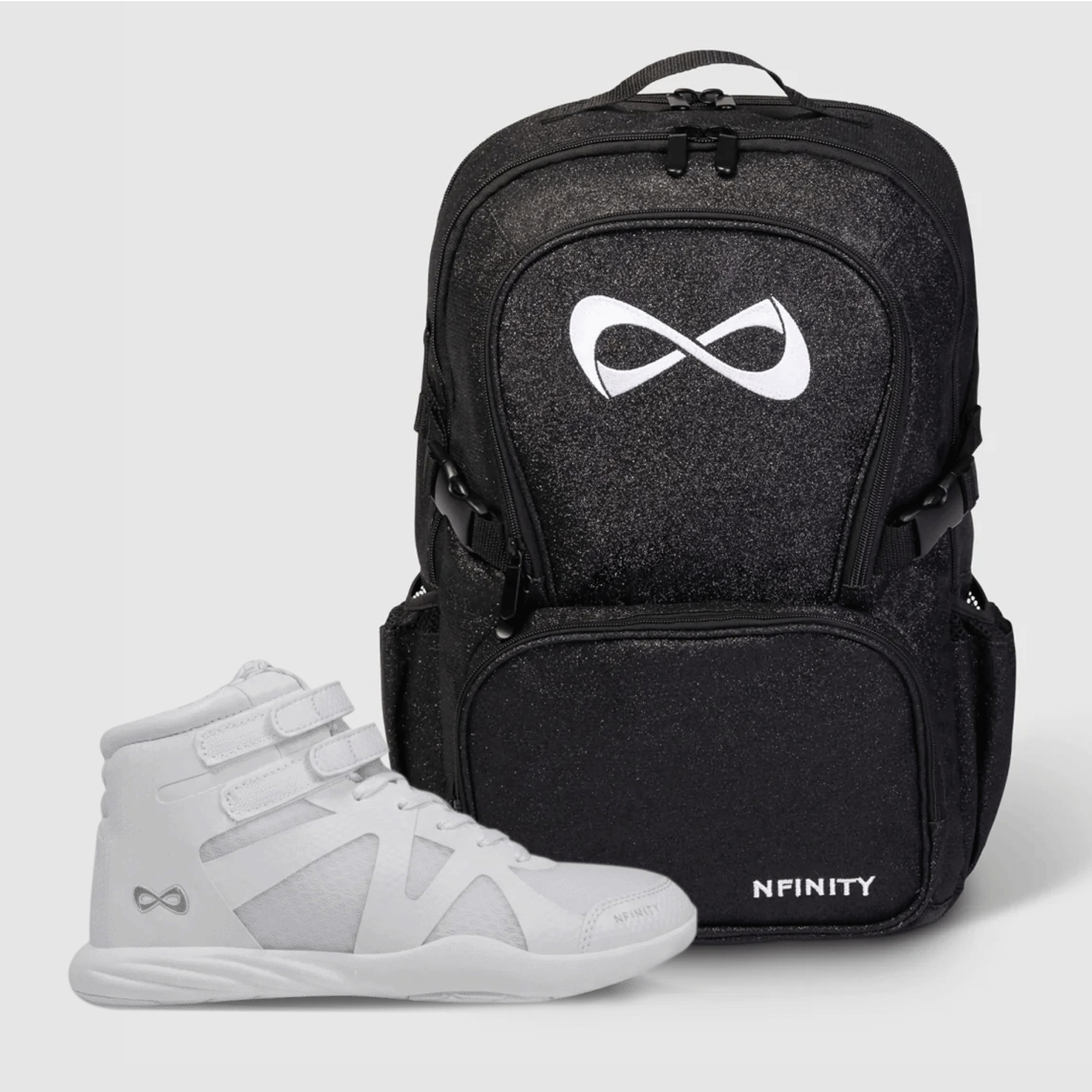 Get competition-ready from head to toe with the Nfinity BEAST bundle and save while you do. Featuring the Nfinity BEAST mid-top cheer shoe and the Nfinity Black Sparkle Backpack, this pairing combines elite performance with standout style.
